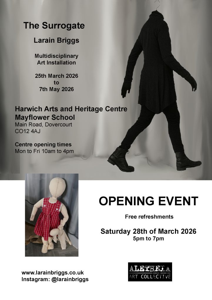 The Surrogate is a multidisciplinary installation exploring trauma and transformation through symbolic mediation. The work considers how objects and constructed figures can function as surrogates for the body, allowing repressed unconscious experiences to be externalised and encountered in symbolic form.